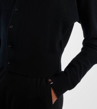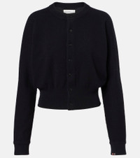 Extreme Cashmere sources its eponymous yarn from Mongolian goats known for their ultra-soft, resilient coats. The Blouson cardigan is crafted from a cashmere blend and boasts a fitted hem for added volume. Product Details - Material: 88% cashmere, 10% nylon, 2% elastane - Care instructions: machine wash at 30 degrees - Made in China - Designer color name: Raven - Item color: black - Closure: buttoned front - Cuff: ribbed - Hem: ribbed - Includes: dust bag - Item number: P01110857 Size & Fit - True to size - One size: perfect fit for sizes XS/M - Cinched waist - Stretchy fabric - Slightly cropped