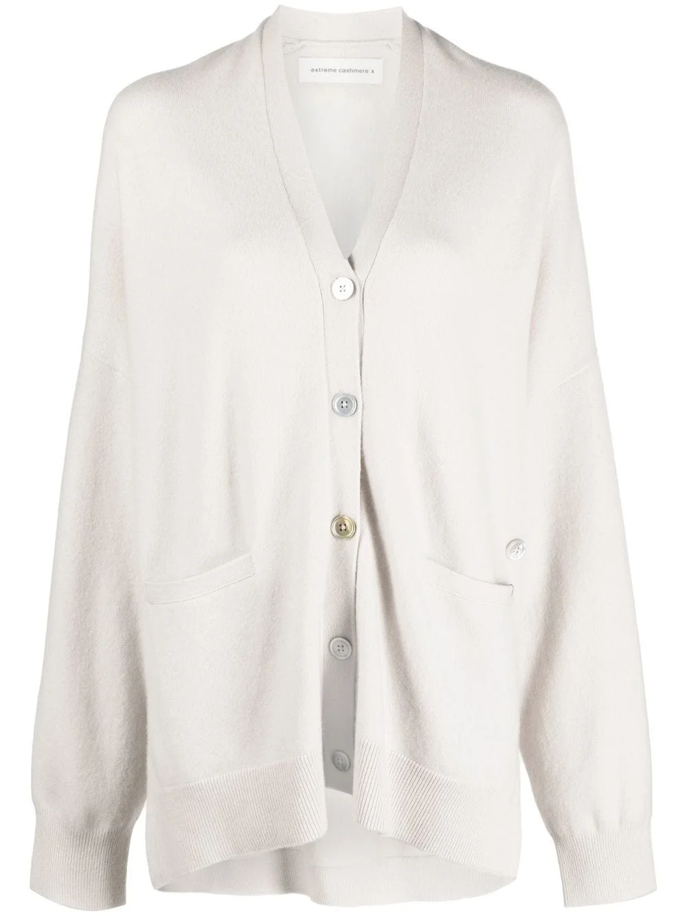 button-up knitted cardigan off-white cashmere blend fine knit front button fastening V-neck long sleeves Conscious: We've partnered with Good On You – an ethical agency that rates how sustainably brands perform. This product comes from a brand that performs well in relation to their impact on animals. Imported Composition Cashmere 88%, Nylon 10%, Spandex/Elastane 2% SIZE & FIT Measurement BUST 55.11 in(140 cm) Shoulder Width 28.74 in(73 cm) SLEEVE LENGTH 20.86 in(53 cm) WAIST 51.18 in(130 cm) Washing instructions Dry Clean Only
