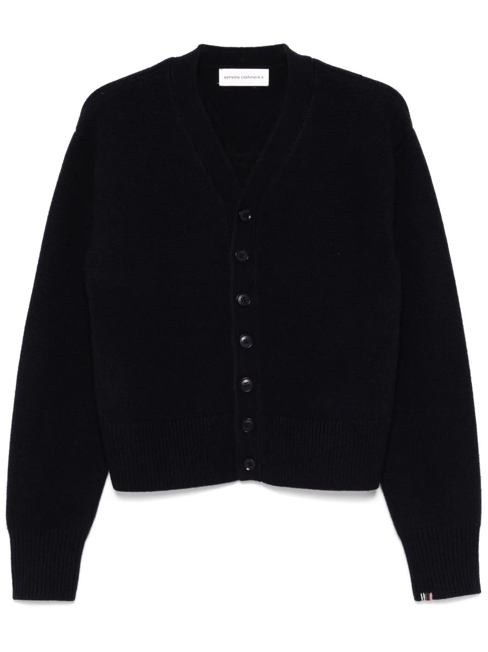 Clover cardigan Highlights - Navy blue - Cashmere blend - Knitted construction - Brushed finish - Front button fastening - Ribbed v-neck - Long sleeves - Ribbed cuffs and hem - When buying this unisex item, keep in mind that it is graded in standard men's sizing. Imported Composition Tagua 100%, Cashmere 88%, Nylon 10%, Spandex/Elastane 2% SIZE & FIT Model measurements Height 5 ft 9 in(1.75 m) Bust/Chest 31.88 in(81 cm) Hips 34.64 in(88 cm) Waist 24.01 in(61 cm) Measurement BUST 39.37 in(100 cm) LENGTH 22.44 in(57 cm) Shoulder Width 18.89 in(48 cm) SLEEVE LENGTH 25.98 in(66 cm) WAIST 18.5 in(47 cm) FittingInformation This unisex piece is only produced in one size; for help with this item's sizing, refer to our product measurements Made with a midweight knit, this piece offers some stretch