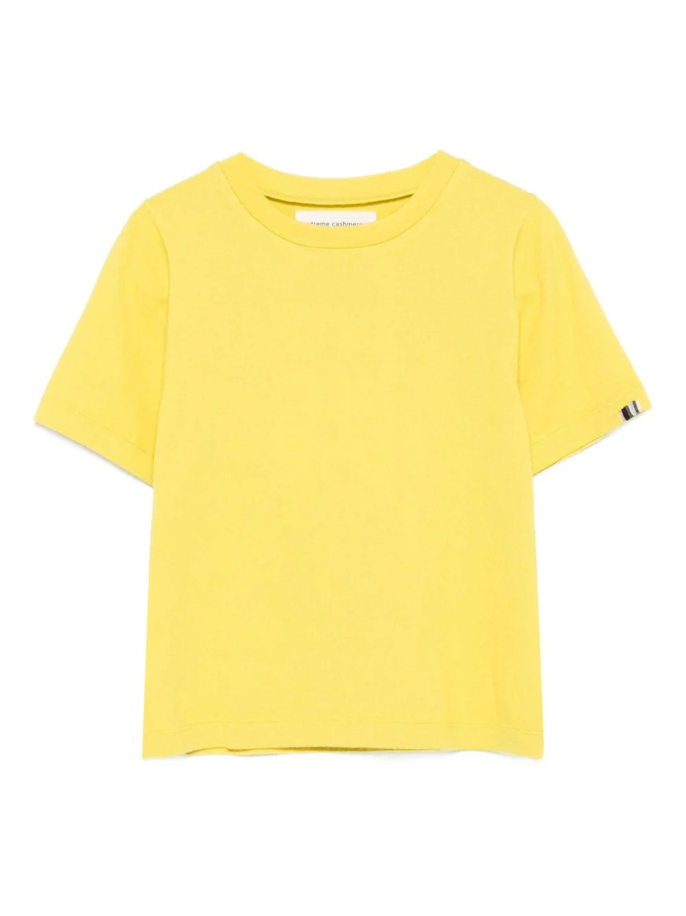 crew-neck short-sleeve top Highlights - Yellow - Short sleeves - Crew neck - Straight hem - Cotton-cashmere blend Imported Composition Cotton 70%, Cashmere 30% SIZE & FIT Model measurements Height 5 ft 10 in(1.79 m) Bust/Chest 31.88 in(81 cm) Hips 35.43 in(90 cm) Waist 23.62 in(60 cm) Measurement BUST 31.49 in(80 cm) Shoulder Width 11.81 in(30 cm) WAIST 32.28 in(82 cm) Washing instructions Machine Wash