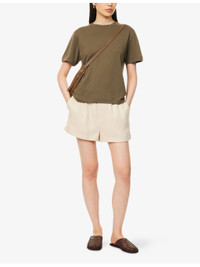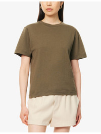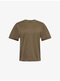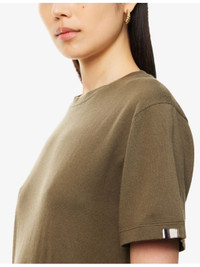 PRODUCT DETAILS - extreme cashmere cotton and cashmere-blend T-shirt - 70% cotton, 30% cashmere - Relaxed fit, round neck, short sleeves, brand stripe embroidery at sleeve, brushed texture, ribbed trims - Machine wash at 30°C - Model is 5ft 10in / 1.78m and wears one size - Midweight, slight stretch - This style is Unisex Ref: R04469777