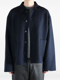 button-up felted jacket Highlights - Navy blue - Wool-cashmere blend - Front button fastening - Side patch pockets - Spread collar - Long sleeves Imported Composition Wool 70%, Cashmere 30% Washing instructions Read Manufacturer Guidelines