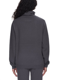 Extreme Cashmere turtleneck in gray, mock neck collar, long sleeves, boxy silhouette. One Size. Composition: 88% Cashmere, 10% Nylon, 2% Elastane. Model is 5ft 9” and is wearing a size OS. Bust: 32” Waist: 24.5” Hip: 35.5"