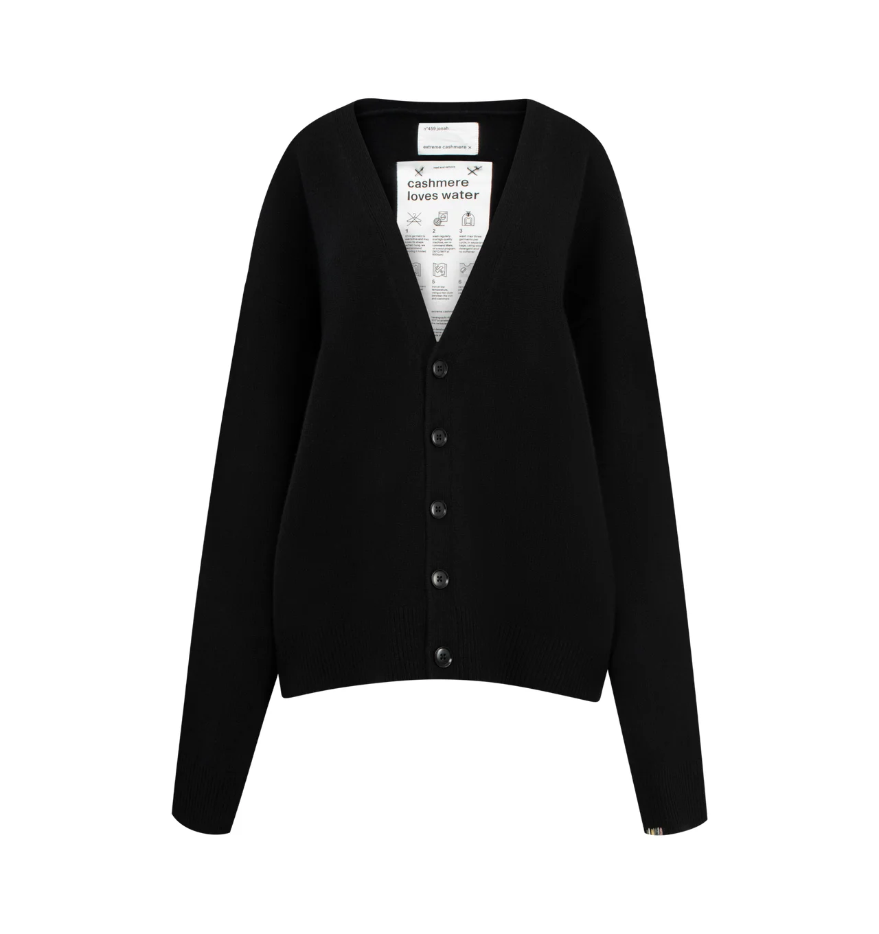 EXTREME CASHMERE Jonah Sweater featuring a slouchy, relaxed-fit cashmere cardigan with a deep v-neck, fastened with five corozo buttons and rib-knit hem and cuffs. 94% cashmere, 5% nylon, 1% elastane. DESIGNER STYLE ID: 459-174-01-TU-02 COLOR: RAVEN