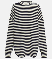 Extreme Cashmere never misses an opportunity to incorporate the highest-quality materials into its designs – as with this N° 53 Crew Hop sweater. A striped design, it has dropped shoulders and a slouchy fit. Product Details - Material: 10% nylon, 88% cashmere, 2% elastane - Made in China - Care instructions: machine wash at 30 degrees - Designer color name: Breton - Comes with garment bag - Item number: P00740873 Size & Fit - True to size - Dropped shoulders - Designed for a loose fit - Mid-weight material - Falls below the hip - One size