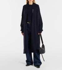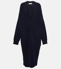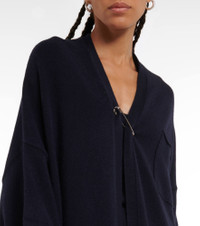 Cocoon yourself in Extreme Cashmere’s luxurious N°61 Koto cardigan. This long-line design is made from a navy cashmere-blend, with a safety pin fastener and slit hem for a comfortable drape. Product Details - Material: 10% nylon, 88% cashmere, 2% elastane - Made in China - Care instructions: machine wash cold - Designer color name: Navy - Pockets: patch, side slit pockets - Item number: P00706326 Size & Fit - True to size - Dropped shoulders - Oversized - Stretchy fabric - One size