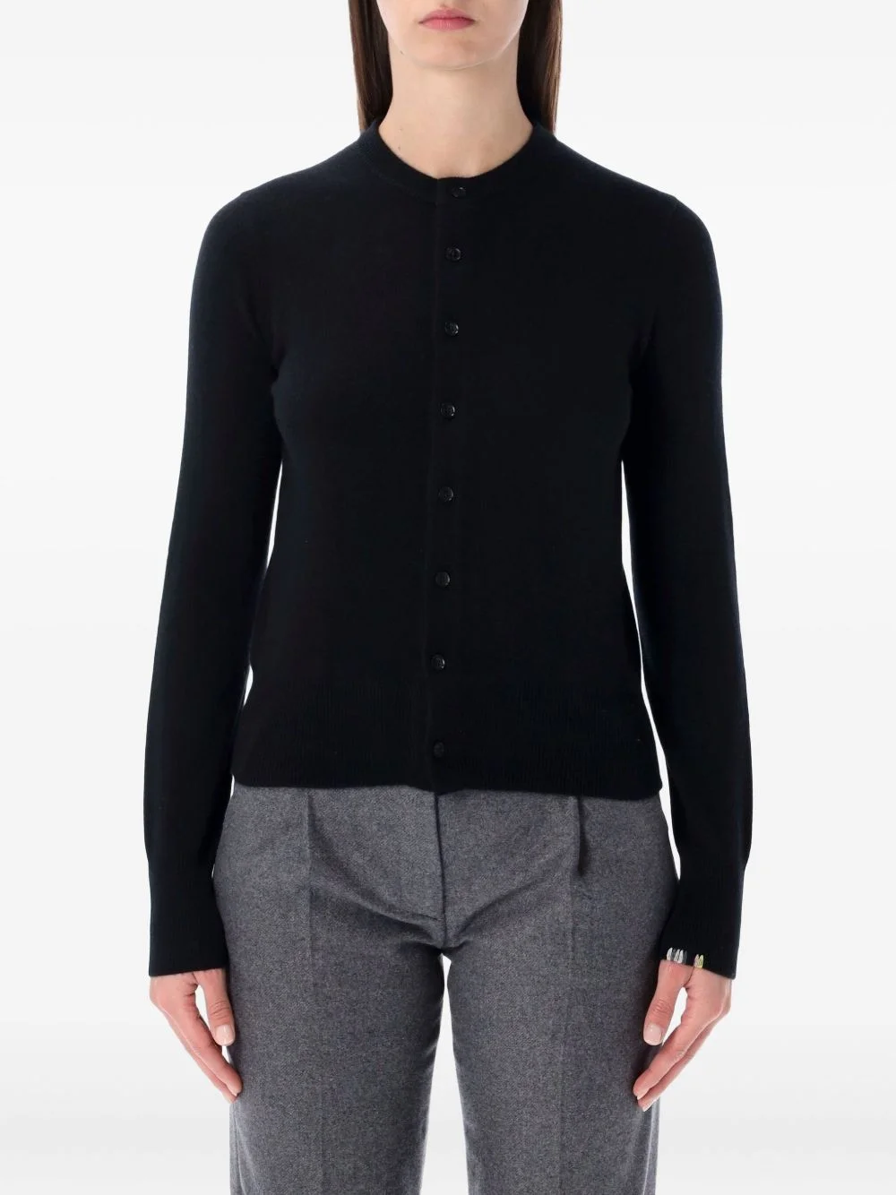 buttoned long-sleeve cardigan Highlights - Raven black - Button fastening - Round neck - Long sleeves Imported Composition Fabric 100% Washing instructions Read Manufacturer Guidelines