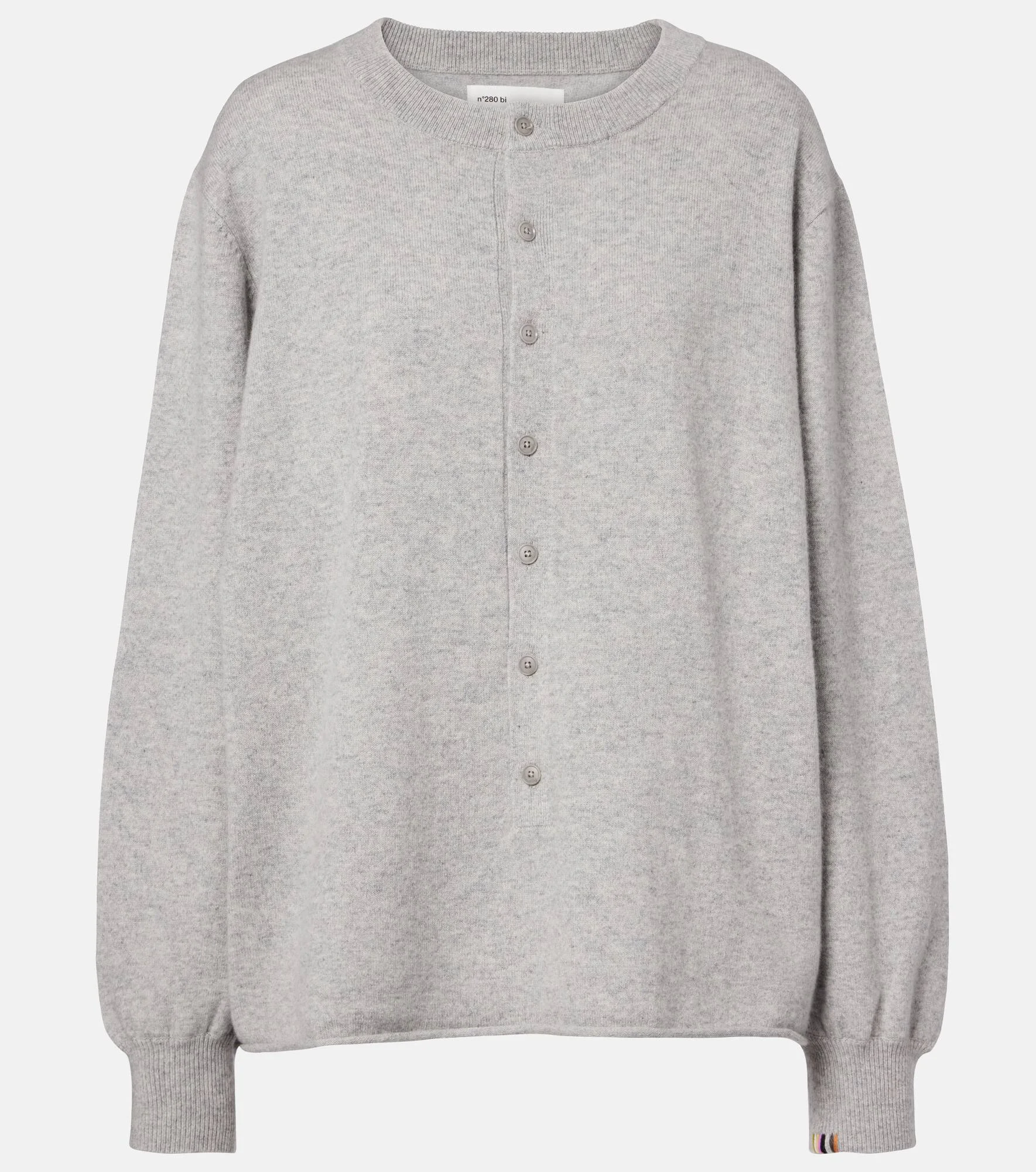 Lightweight and comfortable, the N°280 Bi sweater from Extreme Cashmere is crafted from a soft cashmere-blend. This design is defined by a relaxed silhouette and a button placket at the front. Product Details - Material: 88% cashmere, 10% nylon, 2% elastane - Care instructions: machine wash at 30 degrees - Made in China - Color: grey - Designer color name: Grey - Closure: partially buttoned front - Cuff: ribbed - Includes: dust bag - Item number: P01161981 Size & Fit - True to size - One size: perfect fit for sizes M-XL - Designed for a loose fit - Stretchy fabric - Falls below the hip