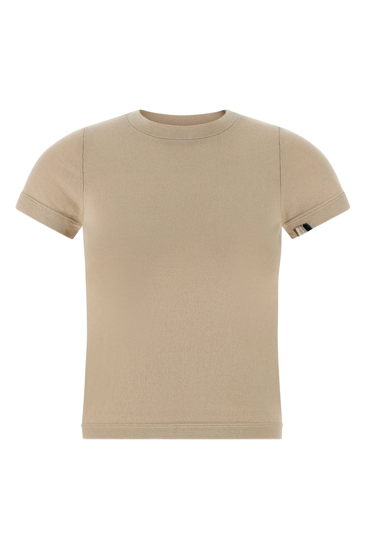 cod. N292AMERICAEGGSHELL 'N°292 America' cotton and cashmere blend crew neck t-shirt with short cuffed sleeves. Color: Beige Size & Fit: extra slim fit - ONE size Composition: 70% cotton 30% cachemire Made in: China