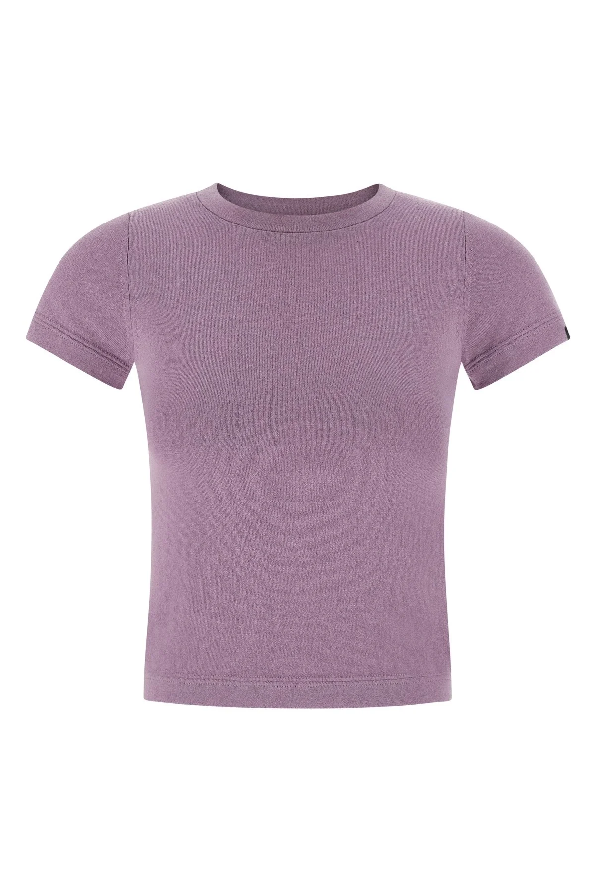 cod. N292AMERICALILA 'N°292 America' cotton and cashmere blend crew neck t-shirt with short cuffed sleeves. Color: Purple Size & Fit: extra slim fit - ONE size Composition: 70% cotton 30% cachemire Made in: China
