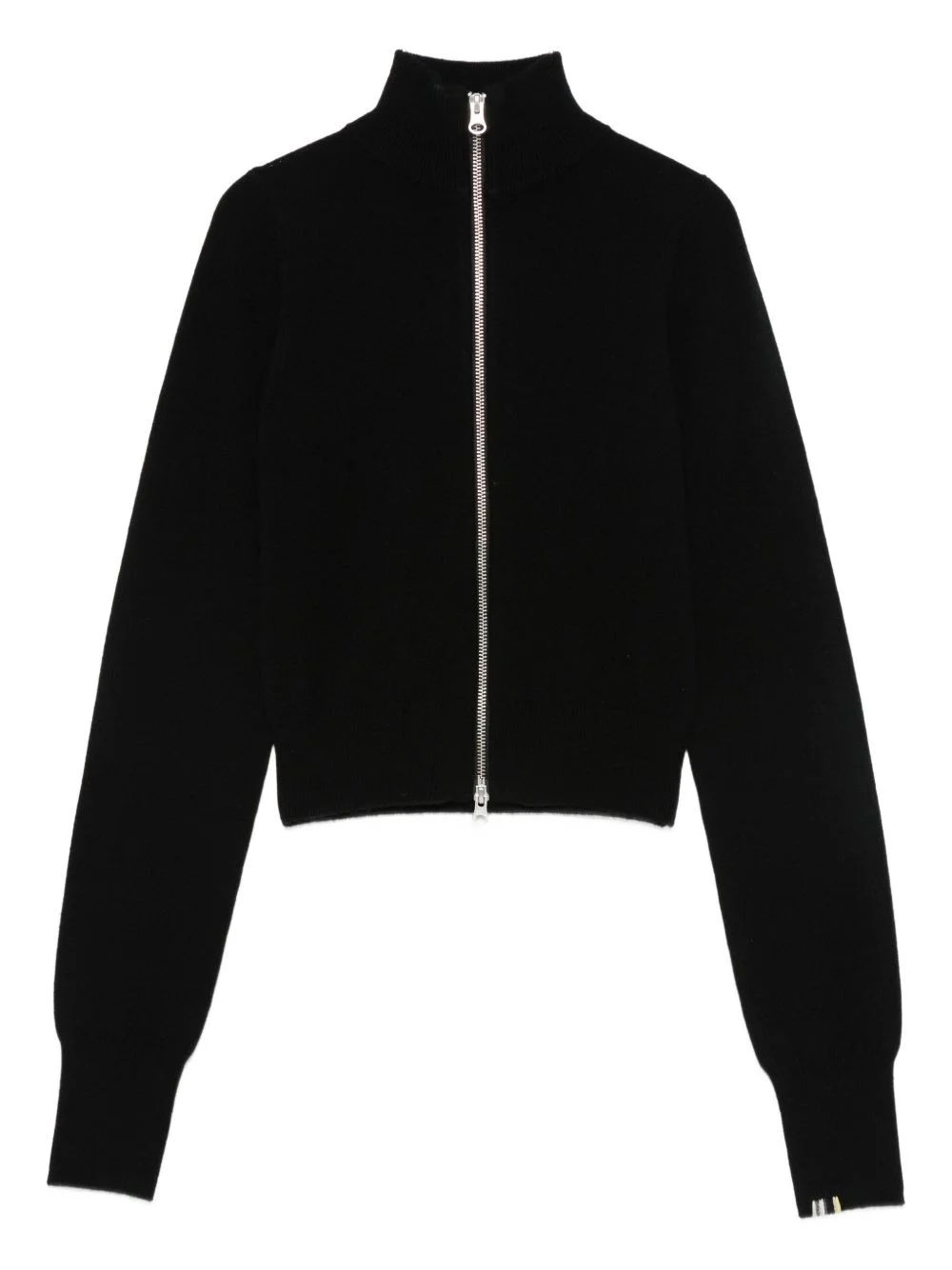 zip-front stand-collar cardigan Highlights - Black - Stand collar - Zip front - Long sleeves - Ribbed cuffs Imported Composition Cashmere 88%, Nylon 10%, Spandex/Elastane 2% SIZE & FIT Measurement CHEST 31.49 in(80 cm) Washing instructions Machine Wash