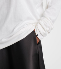 The N°347 Aries T-shirt from Extreme Cashmere is primed to become your new favorite essential. Combining the crisp and breathable properties of cotton with the softness of cashmere, this long-sleeved design comes in a relaxed silhouette. Product Details - Material: 70% cotton, 30% cashmere - Care instructions: machine wash at 30 degrees - Made in China - Designer color name: Snow - Item color: white - Includes: dust bag - Item number: P01052398 Size & Fit - True to size - One size: perfect fit for sizes XS-L - Dropped shoulders - Designed for a loose fit - Stretchy fabric - Falls below the hip - One size