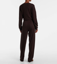 Choose comfort and softness with the N°353 Relax pants from Extreme Cashmere. They're knitted from a light cotton and cashmere blend and feature an elasticated drawstring waist. Product Details - Material: 70% cotton, 30% cashmere - Care instructions: machine wash at 30 degrees - Made in China - Designer color name: Dark Brown - Item color: brown - Elasticated drawstring waist - Pockets: side slit pockets, back pocket - Includes: dust bag - Item number: P01102673 Size & Fit - True to size - One size: perfect fit for sizes XS-L - Adjustable at the waist - Non-stretchy fabric - Straight leg