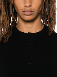 Little 2 cardigan Highlights - Black - Cashmere - Fine ribbed - Front button fastening - Crew neck - Long sleeves - Decorative stitching - Straight hem - When buying this unisex item, keep in mind that it is graded in standard men's sizing. Imported Composition Cashmere 100% SIZE & FIT Model measurements Height 5 ft 9 in(1.75 m) Bust/Chest 31.88 in(81 cm) Hips 34.64 in(88 cm) Waist 24.01 in(61 cm) Measurement Shoulder Width 13.38 in(34 cm) SLEEVE LENGTH 25.59 in(65 cm) WAIST 33.07 in(84 cm) CHEST 35.43 in(90 cm) LENGTH 21.25 in(54 cm) FittingInformation This unisex piece is only produced in one size; for help with this item's sizing, refer to our product measurements The ribbed hem offers a close, comfortable fit Made with a midweight knit, this piece offers some stretch Washing instructions Read Manufacturer Guidelines