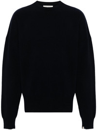 Nº355 Tes sweater Highlights - Navy blue - Cashmere blend - Knitted construction - Crew neck - Drop shoulder - Long sleeves - Ribbed cuffs and hem - When buying this unisex item, keep in mind that it is graded in standard men's sizing. Imported Composition Cashmere 88%, Nylon 10%, Spandex/Elastane 2% SIZE & FIT Model measurements Height 5 ft 10 in(1.78 m) Bust/Chest 32.67 in(83 cm) Hips 35.43 in(90 cm) Waist 23.22 in(59 cm) Measurement CHEST 23.62 in(60 cm) LENGTH 27.55 in(70 cm) Shoulder Width 25.59 in(65 cm) SLEEVE LENGTH 23.62 in(60 cm) WAIST 21.65 in(55 cm) FittingInformation This unisex piece is only produced in one size; for help with this item's sizing, refer to our product measurements The ribbed hem offers a close, comfortable fit Made with a midweight knit, this piece offers some stretch