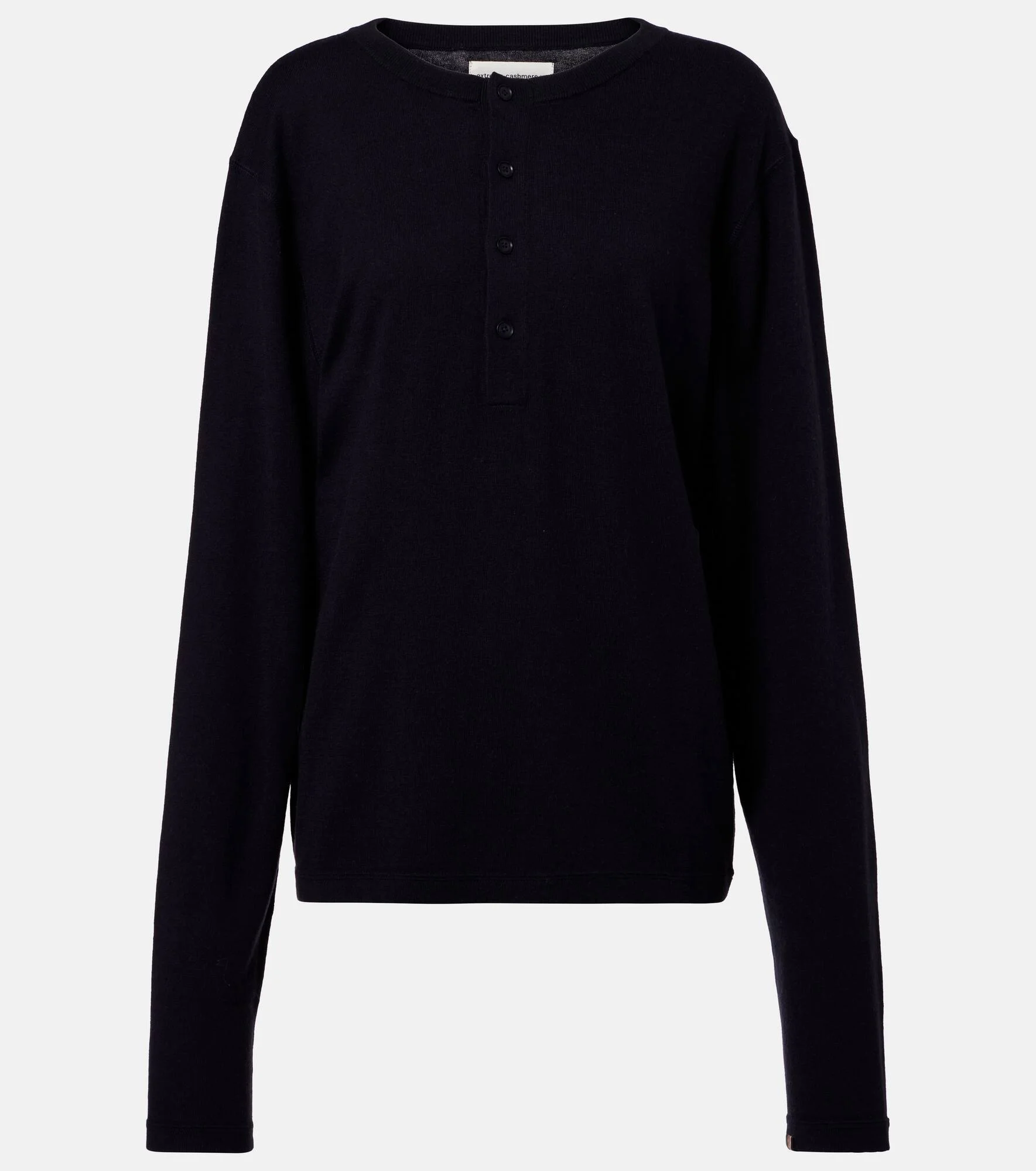 Build your staples rotation around versatile pieces like the N°370 Herman Henley shirt from Extreme Cashmere. Knitted from lightweight cotton and cashmere, this relaxed design is complete with a partially buttoned front. Product Details - Material: 70% cotton, 30% cashmere - Care instructions: machine wash at 30 degrees - Made in China - Designer color name: Navy - Item color: blue - Closure: buttoned front - Collar: crewneck - Relaxed fit - Includes: dust bag - Item number: P01052428 Size & Fit - True to size - One size: perfect fit for sizes XS/L - Designed for a loose fit - Stretchy fabric - Falls to the hip - One size