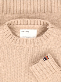EXTREME CASHMERE 'N°383 LOVELY' BEIGE CASHMERE SWEATER WITH CREW NECK, DROPPED SHOULDERS, MULTICOLOR LOGO EMBROIDERY ON CUFFS, RIBBED TRIMS, STRAIGHT HEM. PRODUCT INFO PRODUCT CODE LOVELYOAT COMPOSITION: 100% CASHMERE SIZE AND FIT: SOFT FIT MADE IN: CHINA
