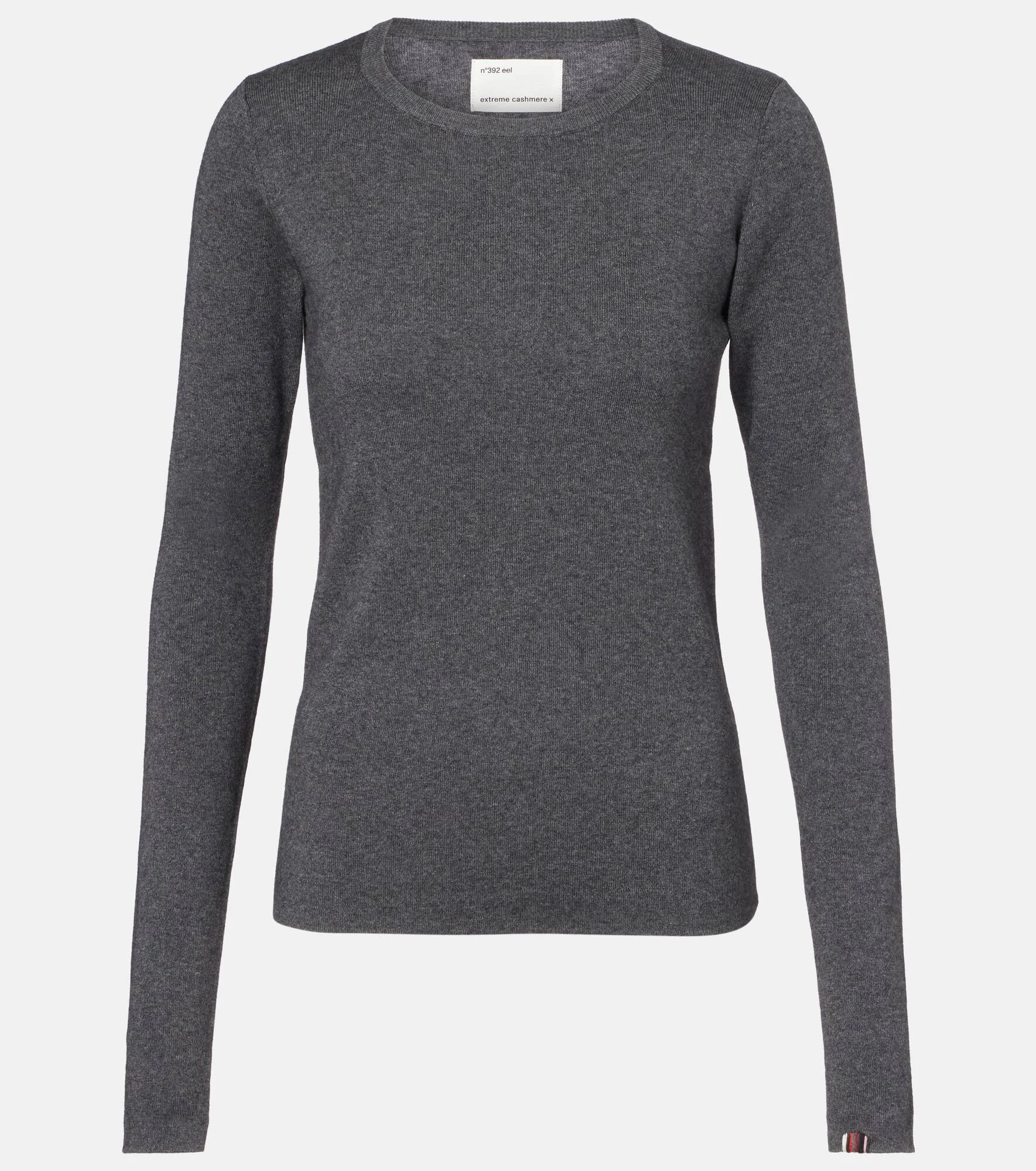 The N°392 Eel T-shirt by Extreme Cashmere is a lightweight, soft choice for effortless layering. Crafted from cotton and cashmere, this piece features a classic crewneck and long sleeves. Product Details - Material: 70% cotton, 30% cashmere - Care instructions: machine wash at 30 degrees - Made in China - Designer color name: Felt - Item color: gray - Collar: crewneck - Includes: dust bag - Item number: P01110855 Size & Fit - True to size - One size: perfect fit for sizes XS/M - Cinched waist - Stretchy fabric - Falls to the hip