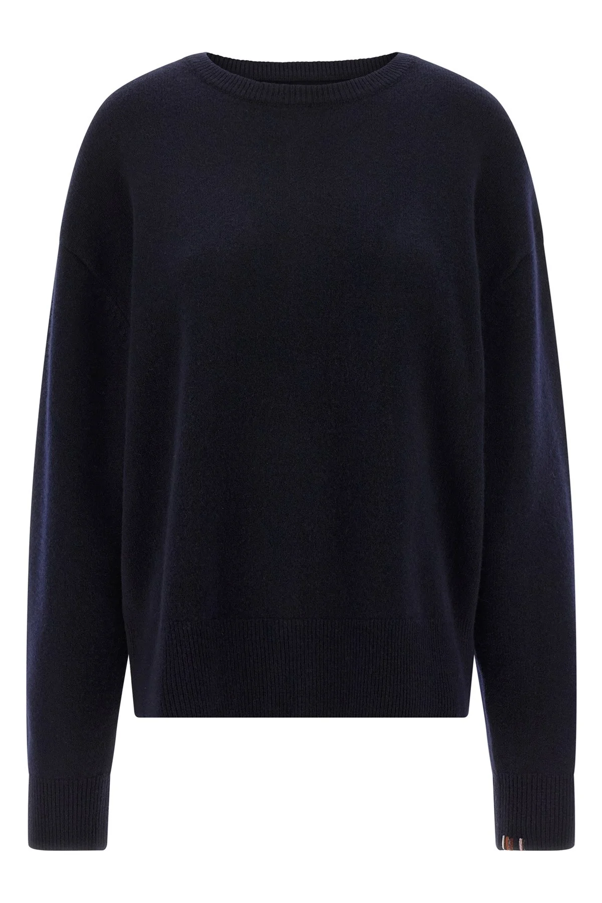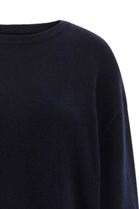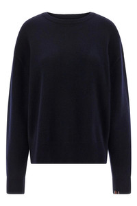 cod. N431MIKENAVY 'N°431 Mike' medium weight cashmere sweater with traditional knit structure, round neckline, long cuffed sleeves and dropped shoulders. Color: Blue Size & Fit: Relaxed fit - One size Composition: 94% ws 5% nylon 1% elastane Made in: China