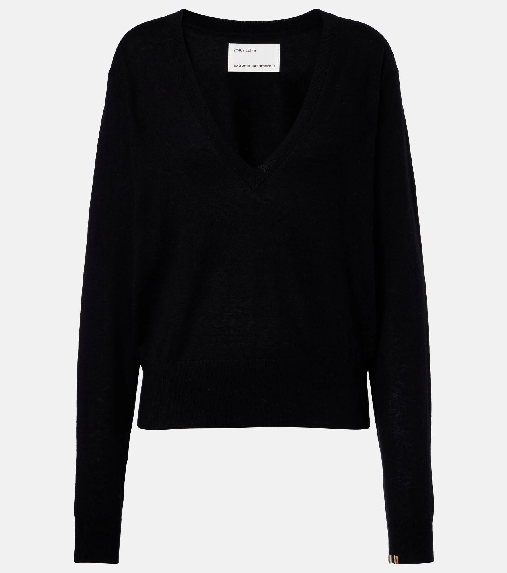 Lightweight and comfortable, the N°467 Collin sweater from Extreme Cashmere is crafted from a soft blend of wool and cashmere. The design showcases ribbed-knit details at the V-neck, hem, and cuffs. Product Details - Material: 70% wool, 30% cashmere - Care instructions: machine wash at 30 degrees - Made in China - Color: black - Designer color name: Raven - Cuff: ribbed - Hem: ribbed - Includes: dust bag - Item number: P01161978 Size & Fit - True to size - One size: perfect fit for sizes XS-L - Straight fit - Stretchy fabric - Falls to the hip