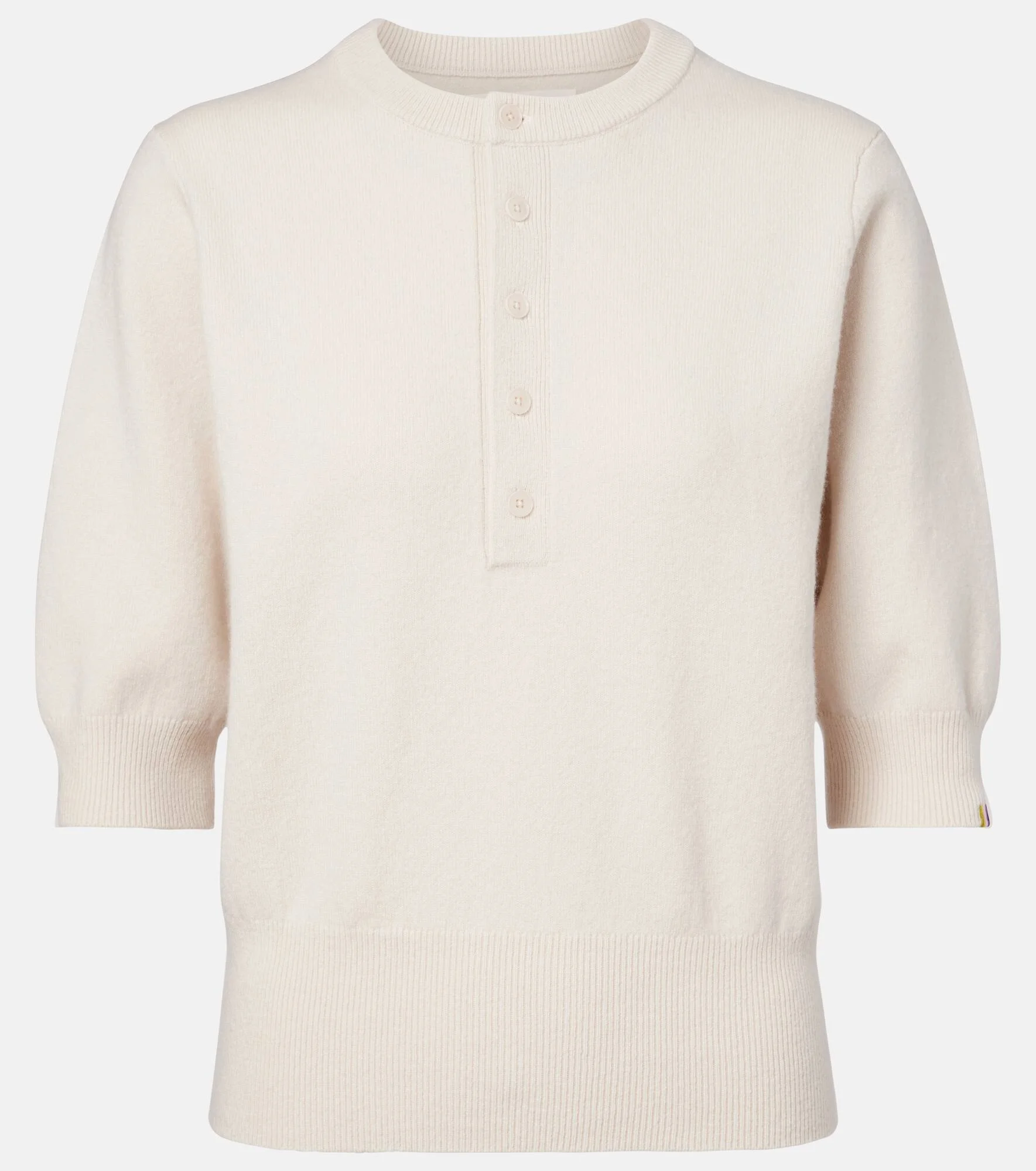 Lightweight and comfortable, the N°477 Mimi sweater from Extreme Cashmere is crafted from a soft cashmere-blend. This design is made for a classic fit and finished with a half-buttoned placket at the front. Product Details - Material: 88% cashmere, 10% nylon, 2% elastane - Care instructions: machine wash at 30 degrees - Made in China - Color: white - Designer color name: Bone - Closure: partially buttoned front - Cuff: ribbed - Hem: ribbed - Item number: P01161985 Size & Fit - True to size - One size: perfect fit for sizes %cupsize% - Straight fit - Stretchy fabric - Falls to the hip