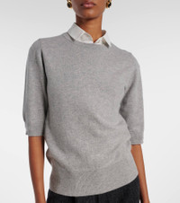 Curate a timeless knitwear collection with soft styles from Extreme Cashmere, like the N°63 Well top. Made from a plush cashmere blend, this design has a crewneck and three-quarter sleeves. Product Details - Material: 88% cashmere, 10% nylon, 2% elastane - Care instructions: machine wash at 30 degrees - Made in China - Designer color name: L Grey - Item color: gray - Collar: crewneck - Cuff: ribbed - Hem: ribbed - Includes: dust bag - Item number: P01102662 Size & Fit - True to size - One size: perfect fit for sizes XS-M - Straight fit - Slightly stretchy fabric - Falls to the hip