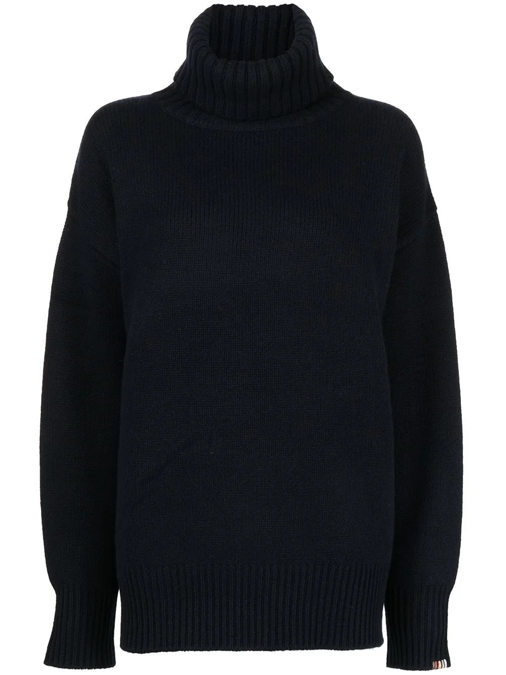 Xtra oversized roll-neck jumper Highlights - Navy blue - Cashmere blend - Knitted construction - Roll neck - Long sleeves - Ribbed cuffs - Ribbed hem Imported Composition Cashmere 97%, Nylon 2%, Spandex/Elastane 1% SIZE & FIT Model measurements Height 5 ft 9 in(1.76 m) Bust/Chest 29.13 in(74 cm) Hips 33.07 in(84 cm) Waist 22.83 in(58 cm) Measurement BUST 51.18 in(130 cm) Shoulder Width 24.01 in(61 cm) SLEEVE LENGTH 22.44 in(57 cm) FittingInformation This is a one size item Cut for an oversized fit Made with a mid-weight stretch fabric Washing instructions Dry Clean Only