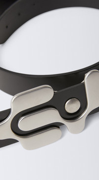 The Trade belt draws inspiration from the retro Ivy League aesthetic, featuring a floating EYTYS logo buckle. Its rich shiny black color adds a touch of sophistication, while the thin shape and overlapping closure with a pin ensure practicality and secure fastening. Product Details: - 100% Cow Leather - Buckle: 100% Brass - Logomark metal buckle - Measurements: 2,2 cm width - Made in Portugal - Unisex