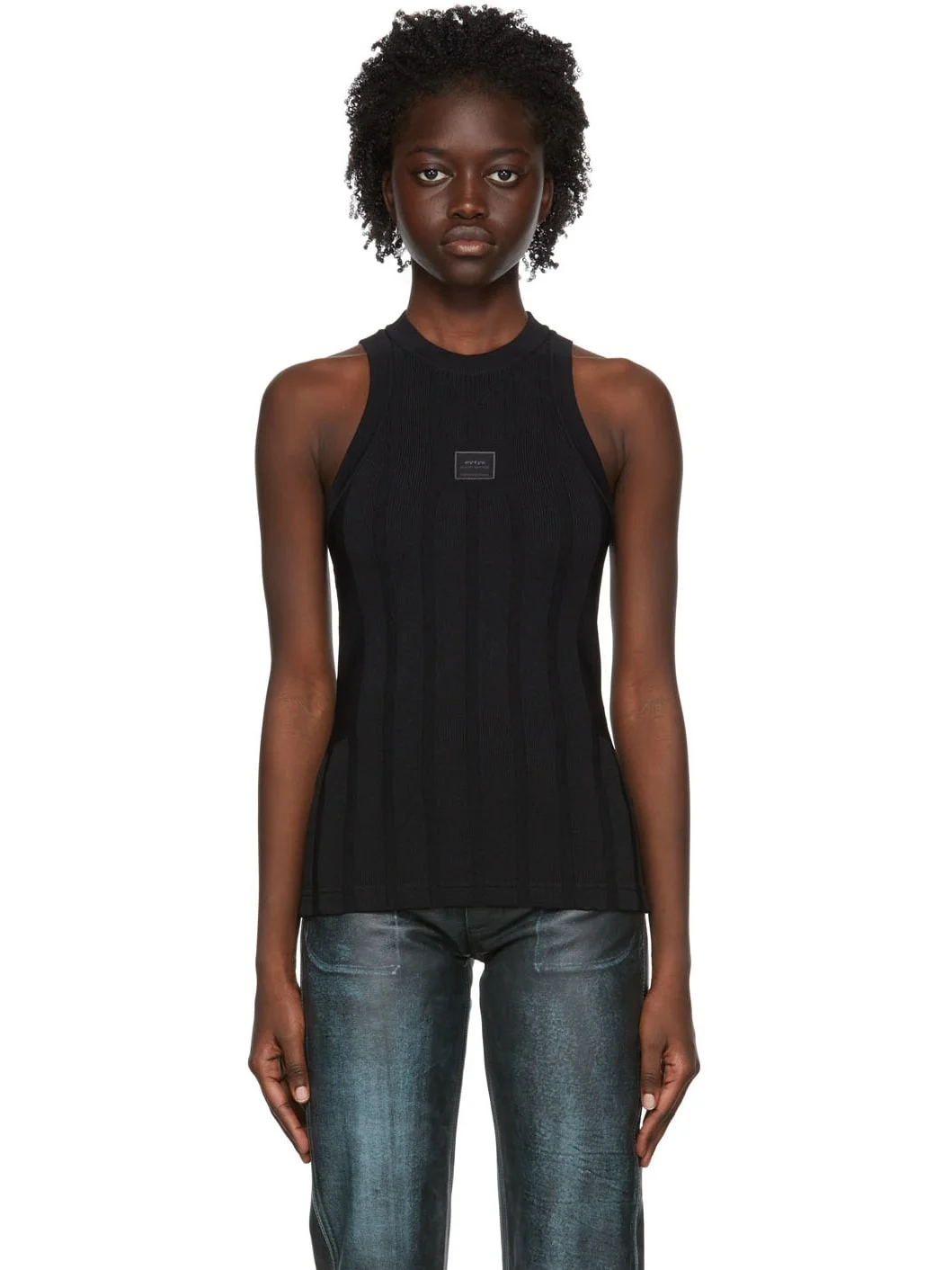 Rib knit viscose-blend tank top. · Logo patch at chest · Crewneck Supplier color: Black