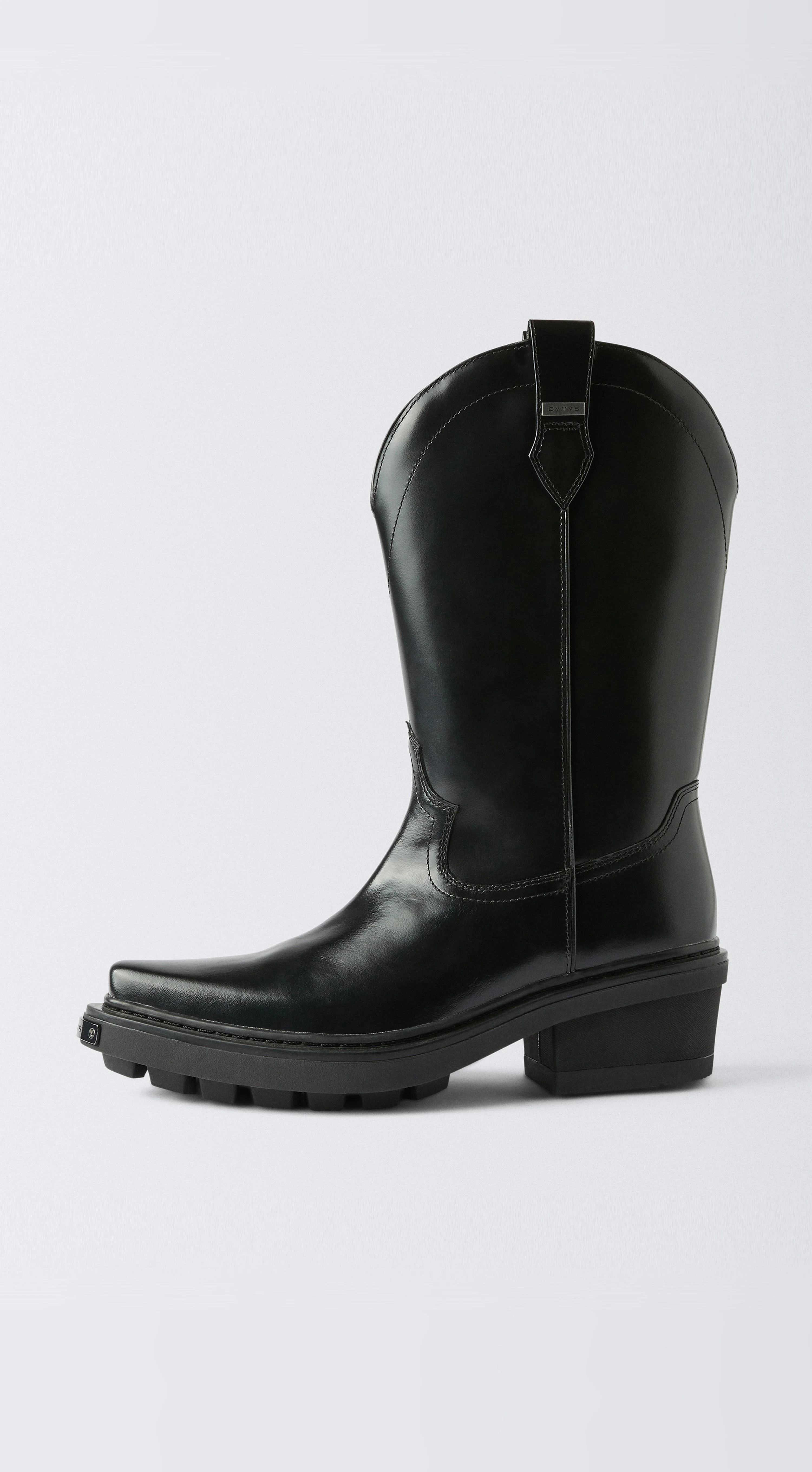 The 'Dodge' boot reinterprets vintage western style with its elongated spear-nosed shape in polished Black leather. Offset by a bold proportion rubber sole that features a grippy tractor tread. Product details This style might feel slightly snug because of its pointy toe shape. We suggest sizing up if you have a wide foot. - Upper: Leather - Lining: Calf leather and cotton - Rubber sole - Leather insole - Metal logo plaque - Made in Vietnam