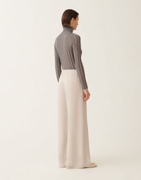 Timeless elegant styles are reinterpreted by contemporary silhouettes in these wide envers satin trousers. It stands out thanks to the elasticated waistband. Produced entirely in Italy through sustainable processes. The model is 1,77m tall and is wearing size IT 40 Details Envers satin Elasticated waistband Wide cut Fabric: 54% viscose - 46% acetate Lining: 88% acetate - 12% silk Made in Italy Model PAD215F291D90800008196