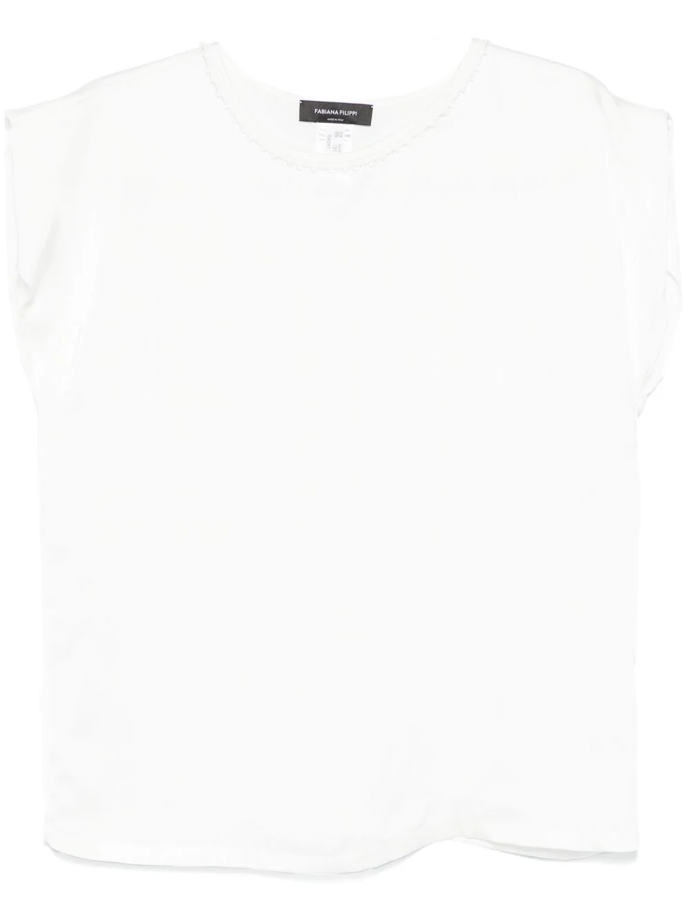 beaded top Highlights - White - Satin finish - Crew neck - Bead detailing - Cap sleeves - Straight hem Made in Italy Composition Viscose 100% Washing instructions Dry Clean Only