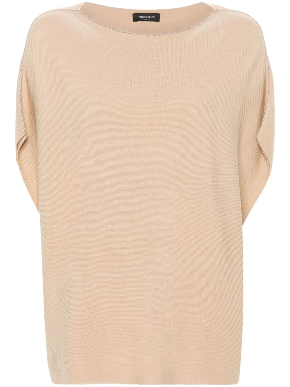beaded-trim cotton knitted top Highlights - Sabbia beige - Cotton - Knitted construction - Beaded trim detail - Boat neck - Cap sleeves - Straight hem - Pull-on style Made in Italy Composition Cotton 100% Washing instructions Machine Wash