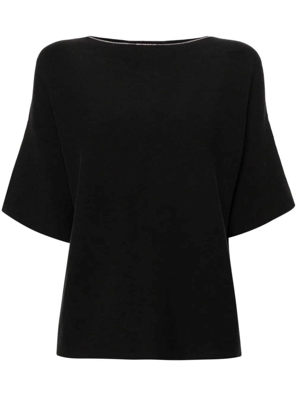 organic-cotton sweater Highlights - Black - Cotton - Fine ribbed - Beaded trim detail - Boat neck - Drop shoulder - Short sleeves - Straight hem Made in Italy Composition Cotton 100% Washing instructions Machine Wash