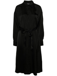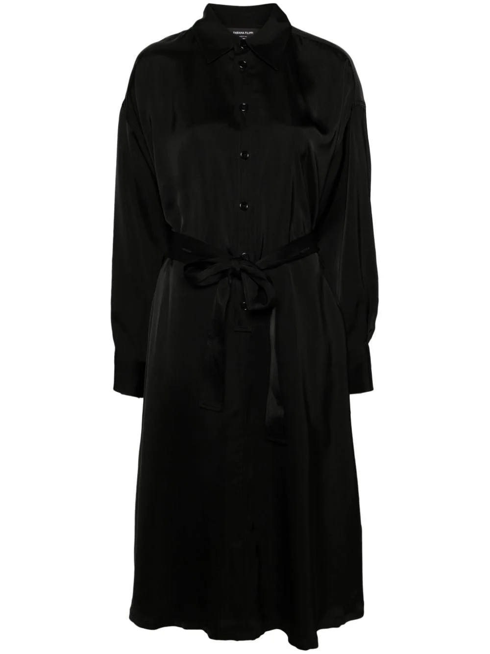 belted satin shirtdress Highlights - Black - Satin finish - Pointed flat collar - Front button placket - Drop shoulder - Long sleeves - Buttoned cuffs - Detachable and adjustable waist belt - Two side inset pockets - Straight hem - Unlined - Ankle-length Made in Italy Composition Viscose 100% Washing instructions Dry Clean Only