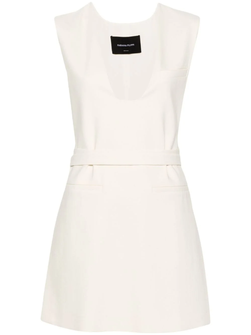 belted-waist dress Highlights - Ivory white - Cotton blend - Twill weave - V-neck - Sleeveless - Chest welt pocket - Two side welt pockets - Belted waist - High-low hem Made in Italy Composition Outer: Cotton 97%, Elastane 3% Lining: Acetate 88%, Silk 12% Washing instructions Hand Wash