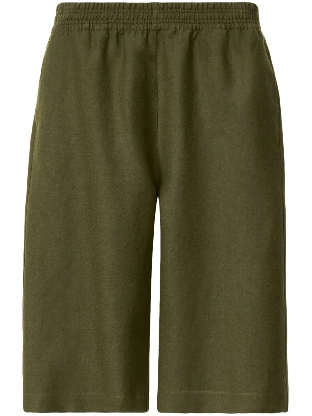 bermuda shorts Highlights - Olive green - Linen-wool blend - Textured finish - Elasticated waistband - Pressed crease - Two side inset pockets - Two rear welt pockets - Knee-length Made in Italy Composition Linen/Flax 59%, Wool 41% Washing instructions Dry Clean Only
