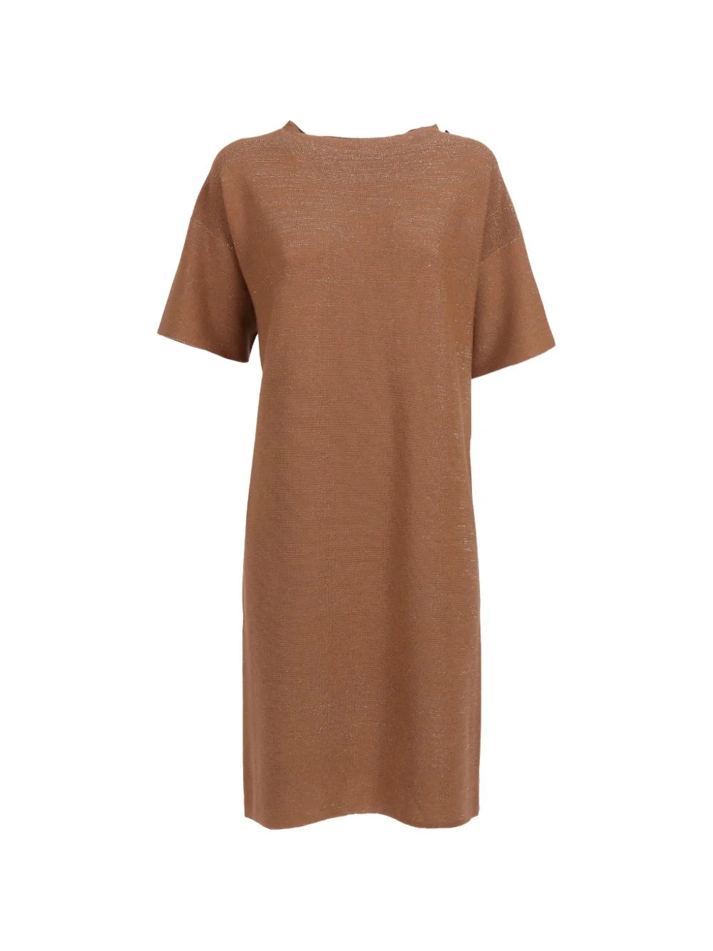 brown dess Highlights - Brown - Short sleeves - Round neck Made in Italy Composition Wool 36%, Cotton 32%, Viscose 25%, Polyester 7% Washing instructions Read Manufacturer Guidelines
