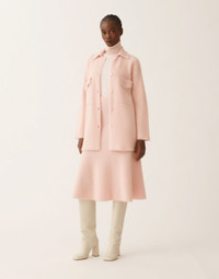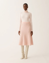The Autumn-Winter 2025–26 collection celebrates unique materials, as seen in this flared skirt in brushed merino wool and mohair. Its distinctive finish creates a fuzzy, cozy effect. Entirely made in Italy with sustainable processes. The model is 1.8 meters tall and wears size IT 40. Details Brushed merino and mohair Fabric: 50% virgin wool – 29% mohair – 16% polyamide – 5% wool Made in Italy Model GND225F803L62000002200
