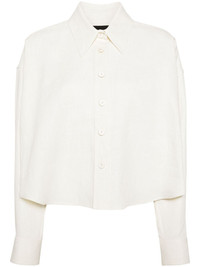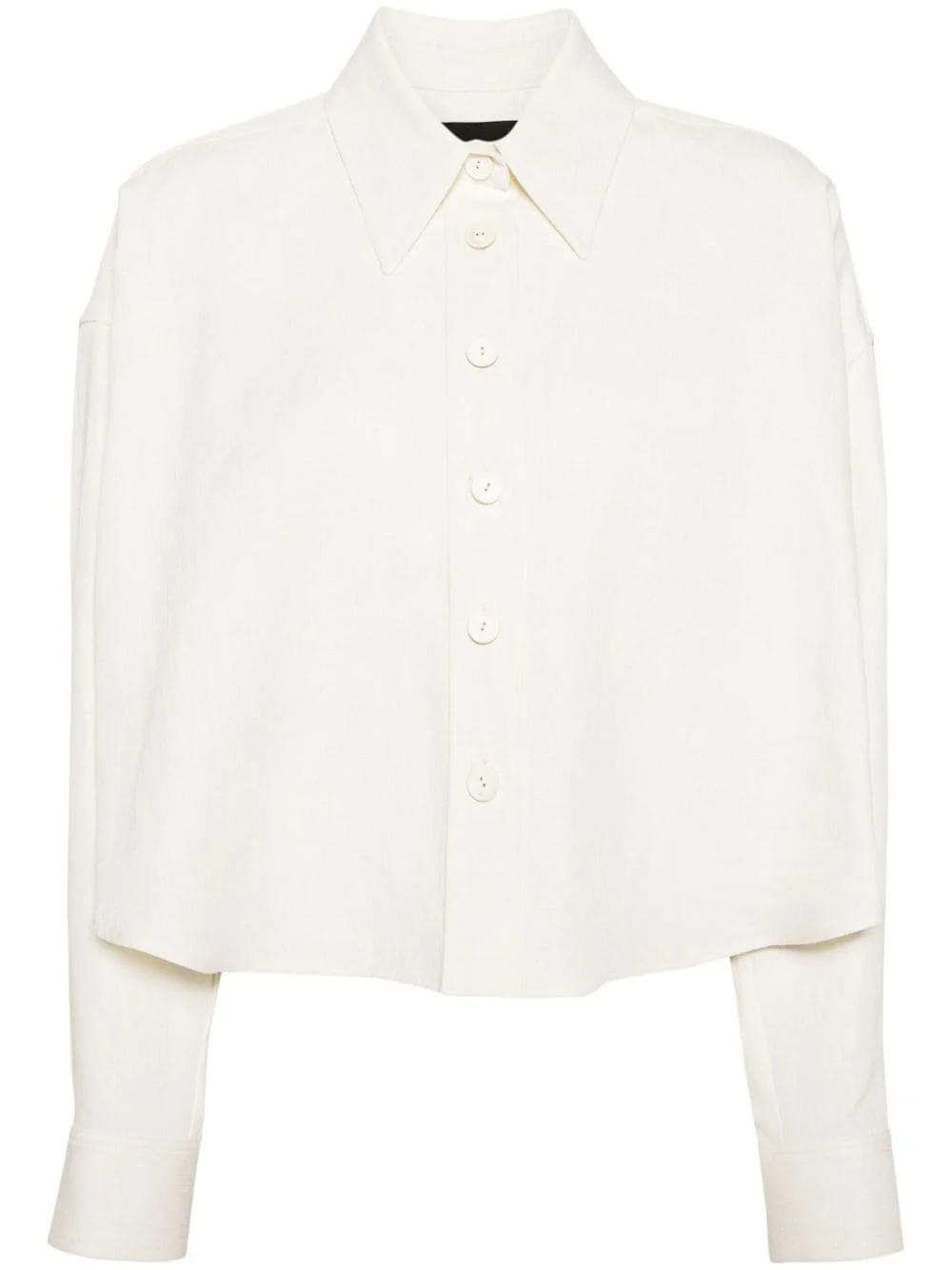 buttoned linen blend shirt Highlights - White - Linen blend - Textured finish - Pointed flat collar - Front button fastening - Drop shoulder - Long sleeves - Buttoned cuffs - Straight hem Made in Italy Composition Linen/Flax 60%, Viscose 26%, Polyester 14% Washing instructions Dry Clean Only