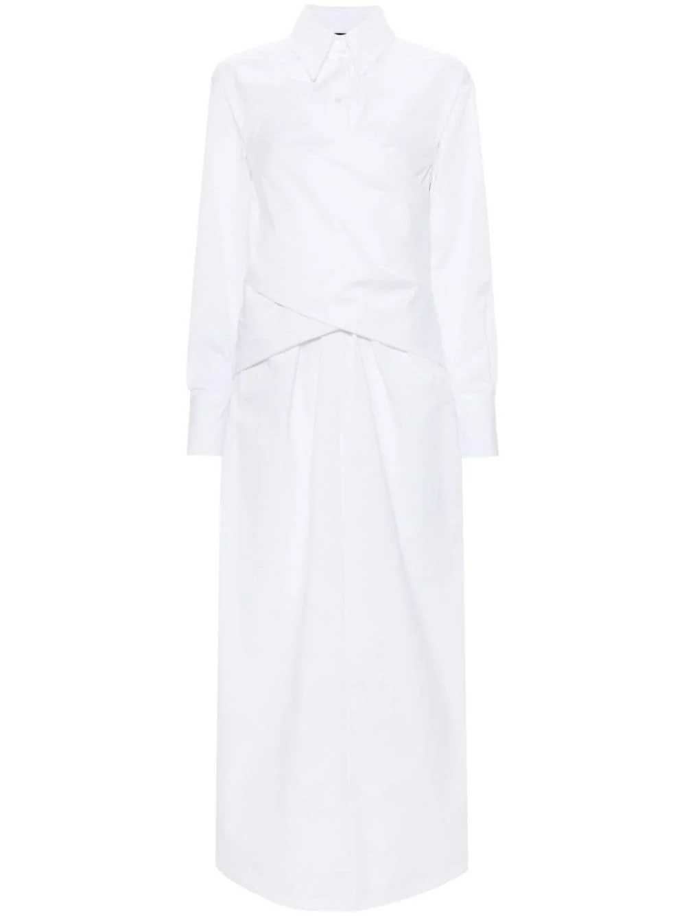 crossover-detail poplin shirtdress Highlights - White - Cotton - Poplin texture - Crossover detail to the front - Pleat detailing - Classic collar - Front button fastening - Rear button fastening - Long sleeves - Buttoned cuffs - Elasticated waistband - Two side slit pockets - Flared skirt - Straight hem - Maxi Made in Italy Composition Cotton 100% Washing instructions Dry Clean Only