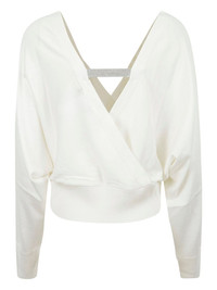 crossover-neck wrap top Highlights - White - Crossover neck - Wrap design - Long sleeves - Open back - Cropped hem Made in Italy Composition Silk 55%, Cotton 45% Washing instructions Read Manufacturer Guidelines