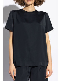 decorative neck t-shirt Highlights - Navy blue - Fsc viscose - Crew neck - Ribbed band collar - Short sleeves - Straight hem Made in Italy Composition Viscose 100% Washing instructions Read Manufacturer Guidelines