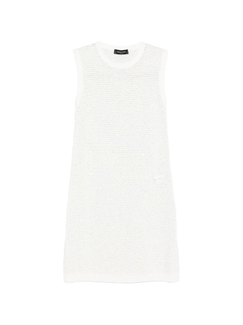 crew-neck sleeveless mini dress Highlights - White - Knitted construction - Sleeveless - Round neck - Sequin embellishment Made in Italy Composition Outer: Cotton 78%, Polyamide 12%, Polyester 10% Lining: Polyester 82%, Elastane 18% Washing instructions Read Manufacturer Guidelines