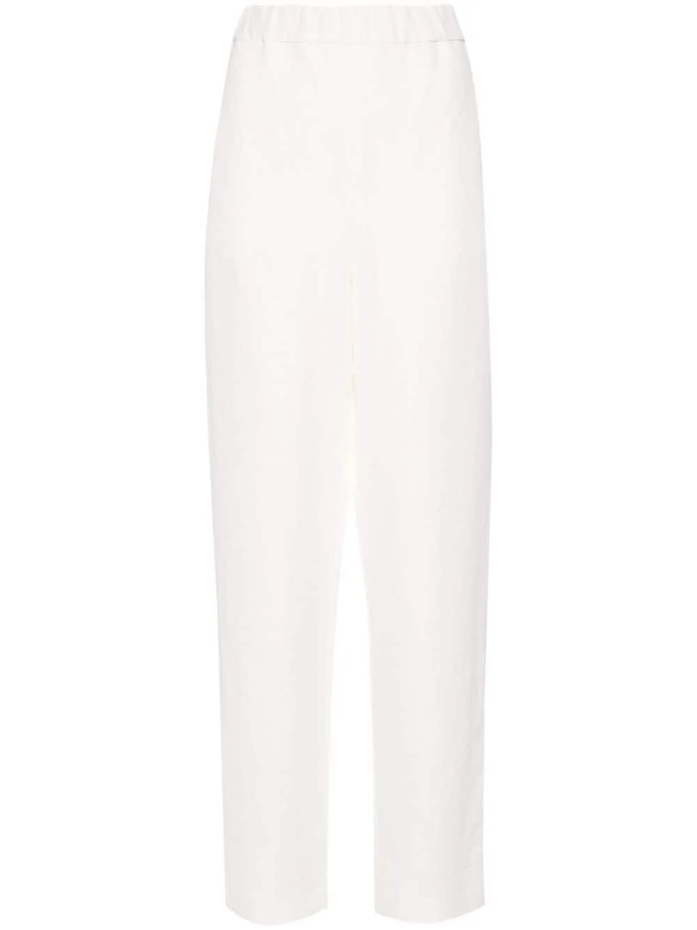 jogging-fit trousers Highlights - White - Twill weave - Elasticated waistband - Two side welt pockets - Rear welt pocket - Wide style Made in Italy Composition Outer: Viscose 64%, Linen/Flax 36% Lining: Acetate 88%, Silk 12% Washing instructions Dry Clean Only
