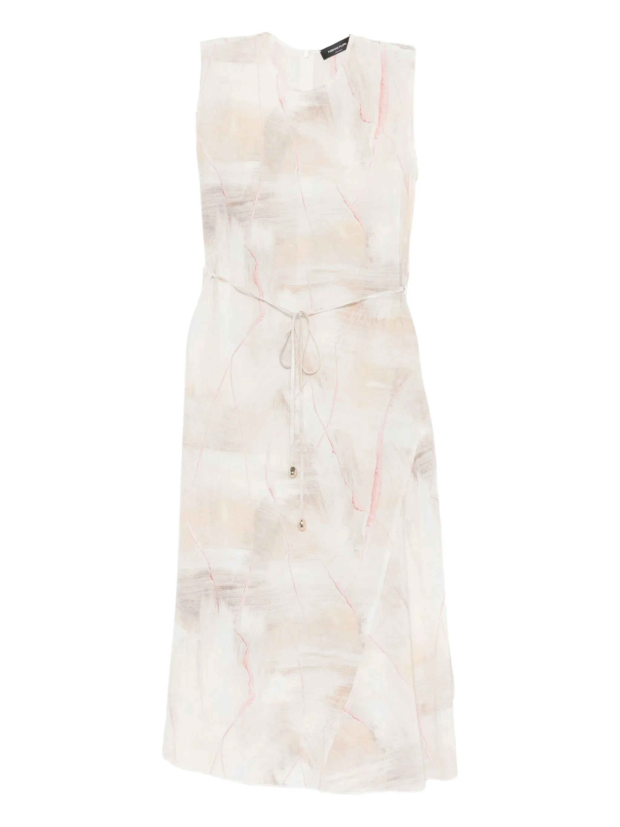 beige abstract print sleeveless round neck adjustable detachable waist belt - Color: NEUTRALS - Made in: Italy - Designer Style ID: ABD215F178 D886 VR1 Composition and care Silk: 100.0%