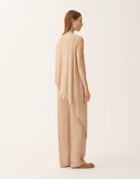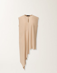 Asymmetric top in an innovative silk-blend crepe de chine, featuring a washed finish that provides a matte texture and a fluid feel. It wraps around the silhouette, enhancing femininity, and stands out with its exclusive plexiglass detail. Made in Italy using sustainable processes. The model is 1,76 m tall and wears size IT 40. Details Crepe de chine Plexiglass detail Fabric: 68% acetate – 32% silk Length: 64 cm (size 40) Made in Italy Model TPD266F288D94300000157