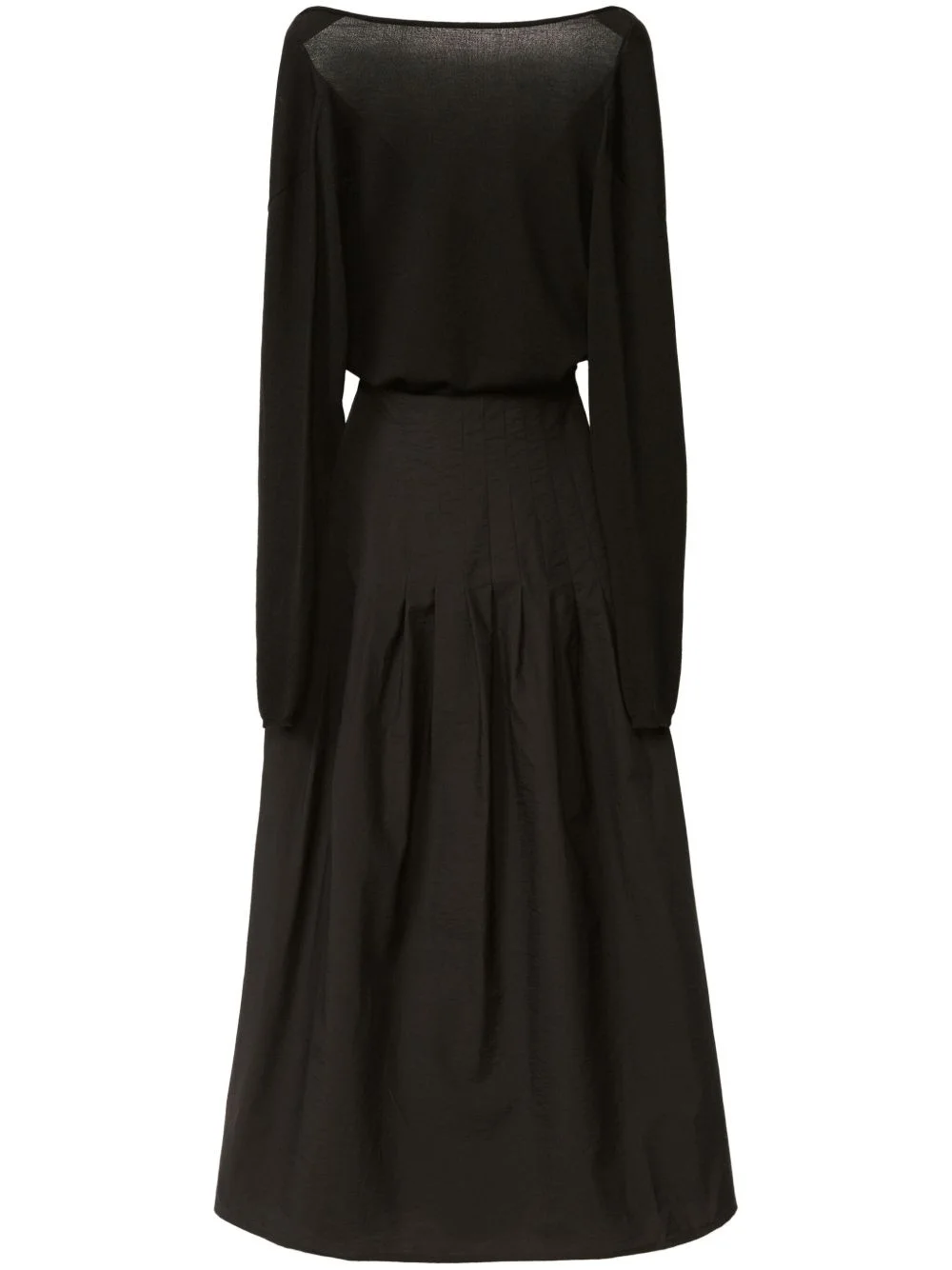 flared dress Highlights - Black - Pull-on style - Boat neck - Long sleeves - Pleated skirt Made in Italy Composition Cotton 75%, Polyamide 25% Washing instructions Dry Clean Only