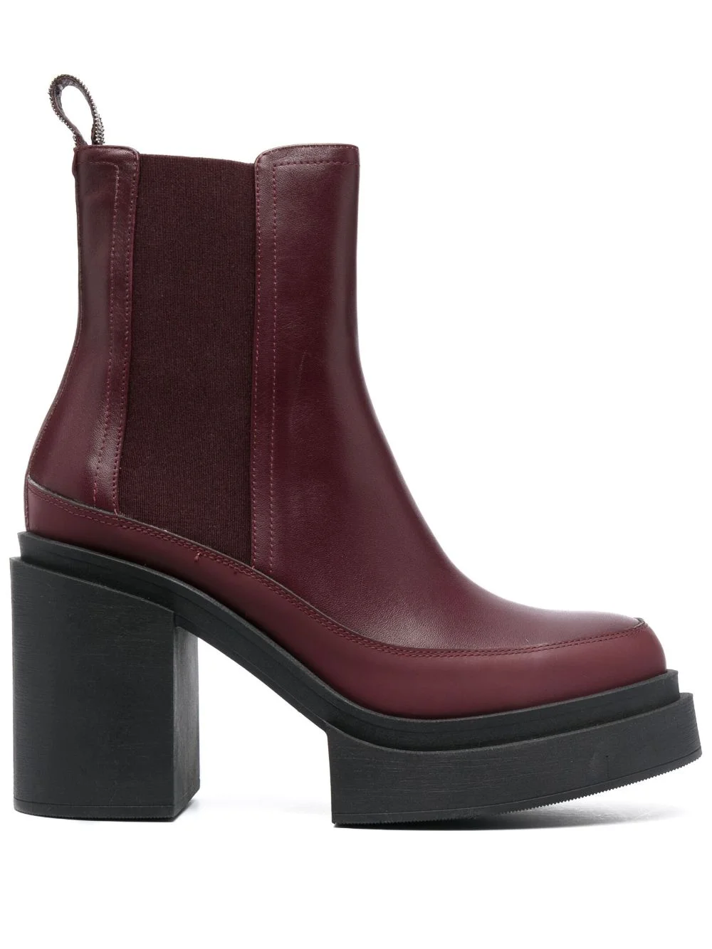 flatform combat boots Highlights - Bordeaux red - Calf leather - Elasticated side panels - Pull-tab at the heel - Ankle-length - Round toe - Ridged rubber sole - Branded insole - Flatform sole - Block heel Made in Italy Composition Outer: Calf Leather 100%, Fabric 100% Sole: Rubber 100% Lining: Calf Leather 100%, Fabric 100% SIZE & FIT Measurement HEEL 3.74 in(9.5 cm) HEIGHT 5.51 in(14 cm) Sole height 1.37 in(3.5 cm)