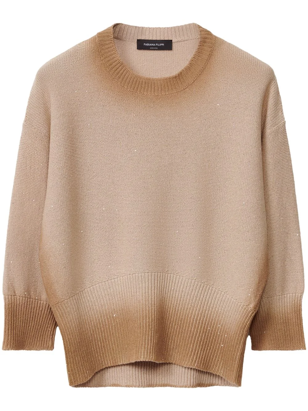 gradient-effect sweater Highlights - Sand beige - Ribbed cuffs and hem - Crew neck - Sequin embellishment Made in Italy Composition Cotton 61%, Linen/Flax 38%, Polyester 1% Washing instructions Read Manufacturer Guidelines